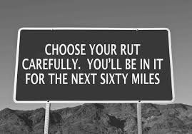 (stuck) in a rut: kept in an established way of living or working that never changes.